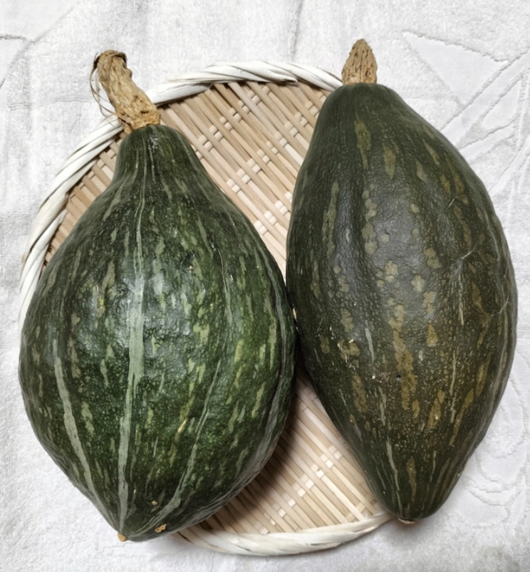 ラグビーボール型が特長で、まな板の上では横になるのでカボチャの中では切りやすいです。また、煮ても、焼いても、蒸しても、お菓子に使っても美味しいと好評です。カボチャ好きの方は是非、一度ご賞味下さいませ。「ロロン、うまいなぁ〜」と、うなづくはずです。
