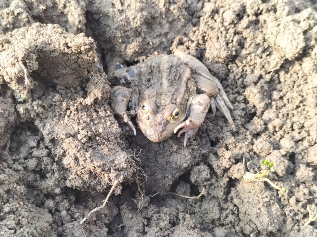 HOME > セリ > セリ 動物 冬眠中のカエル 投稿日:2025-11-27 セリを掘っていたら土の中からカエルさんが顔を出しました。すごく驚いた顔して目を見開いてこっちを見てました。殿様カエルかな? 収穫後は土の中に埋め戻してあげました。冬眠邪魔してごめんね、カエルさん。 セリ(食べチョク) Twitter Share Pocket Hatena LINE コピーする -セリ, 動物